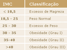 ver mais....IMC é a sigla para Índice de Massa Corpórea, parâmetro adotado pela Organização Mundial de Saúde para calcular o peso ideal de cada pessoa.